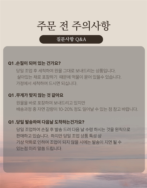 · 배송비 : 4,000원(6개 마다 기본배송비 반복 부과)