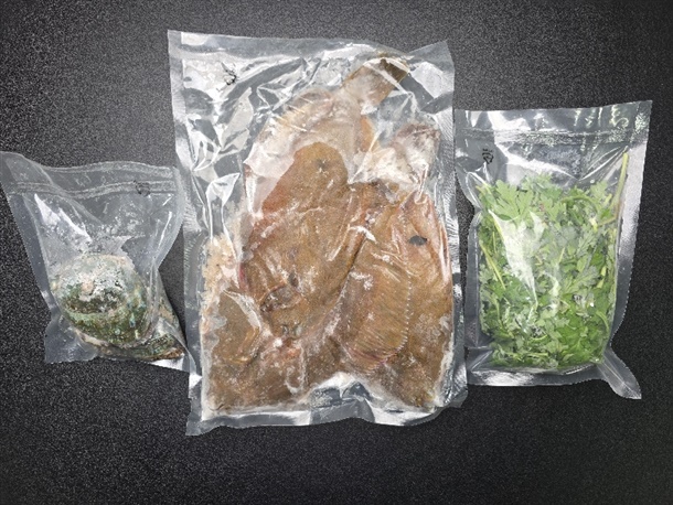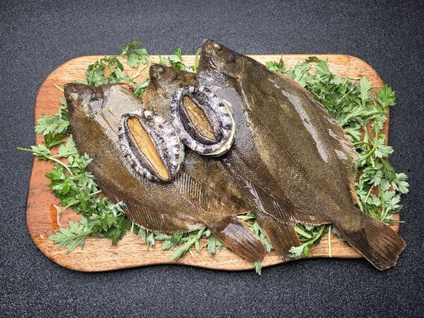※ 중량/ 사이즈 : 급냉 자연산 도다리 2-4미 1kg내외 / 전복 200g 2-4미내외 / 생쑥 100g