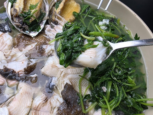 뜨뜻한 국물에 보드라운 도다리 한점.
