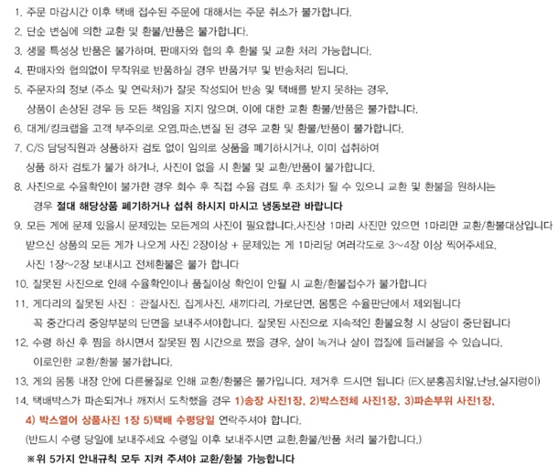 · 일부 상품에 대해서 교환/반품 정책이 위와 상이할 수 있습니다.